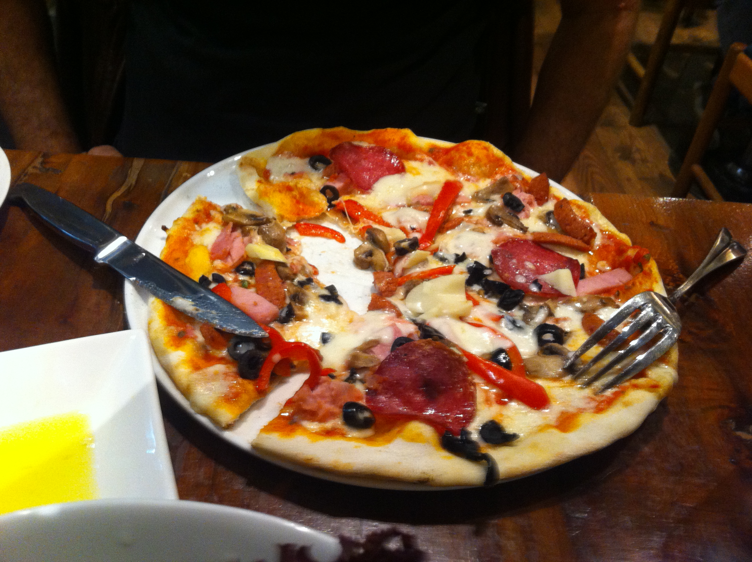 Nesta pizzaria há opções variadas de saladas, sanduíches, massas e sobremesas. Não tem forno a lenha, mas é um lugar bem aconchegante.